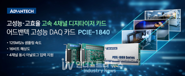 [인더스트리뉴스 정승훈 기자] 어드밴텍이 산업, 연구 및 전자 테스트 애플리케이션에 최적화된 고속 4채널 디지타이저 카드 ‘PCIE-1840’을 국내에 출시했다고 27일 밝혔다.